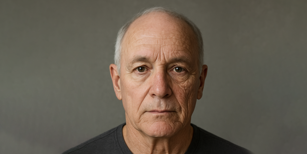 This 69-year-old man spent 28 years as a truck driver. His left side was continuously exposed to daylight through the window; his right side was shielded.